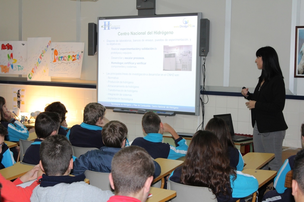 El proyecto DivulgaH2, financiado por FECYT-MINECO, cuyo objetivo es la formación y divulgación científica de las tecnologías de hidrógeno y pilas de combustible contempla entre sus actividades la divulgación científica a estudiantes de diferentes niveles. Para ello, el Centro Nacional del Hidrógeno (CNH2) lleva a cabo jornadas divulgativas adaptadas para darles a conocer estas tecnologías.