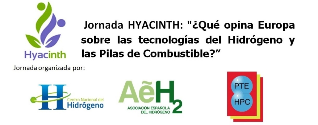 [:es]El CNH2, la AeH2 y la PTE HPC organizan, de manera conjunta, la Jornada HYACINTH: «¿Qué opina Europa sobre las tecnologías del Hidrógeno y las Pilas de Combustible?», en la que se expondrá la opinión, percepción y aceptación de las tecnologías del hidrógeno y las pilas de combustible en Europa.